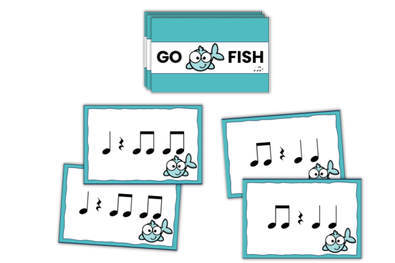 Go Fish is a wonderful rhythm review game, and excellent practice for both clapping rhythm patterns as well as actively listening to and aurally recognizing rhythm patterns.